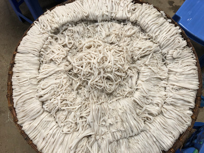 こちらのエリアのフォーは米粉というより小麦粉からできているようなコシのある麺。昔おばあちゃんが家で手打ちでつくってくれたうどんを思い出すような素朴な味わい。ハノイではなかなか見かけない豚肉のフォーを市場で食べてみました。15,000VND 約75円/杯